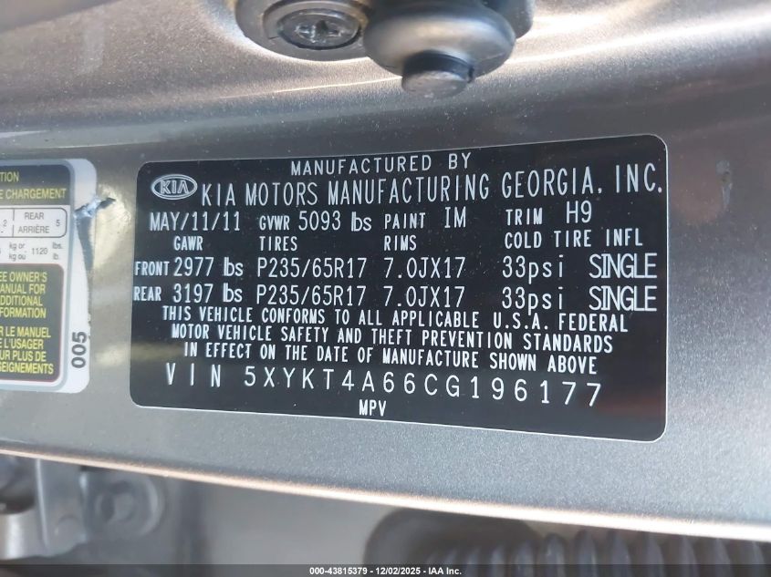 2012 KIA SORENTO 2012 року Бензин, 2.4, Передний привод, vin - 5XYKT4A66CG196177 из США