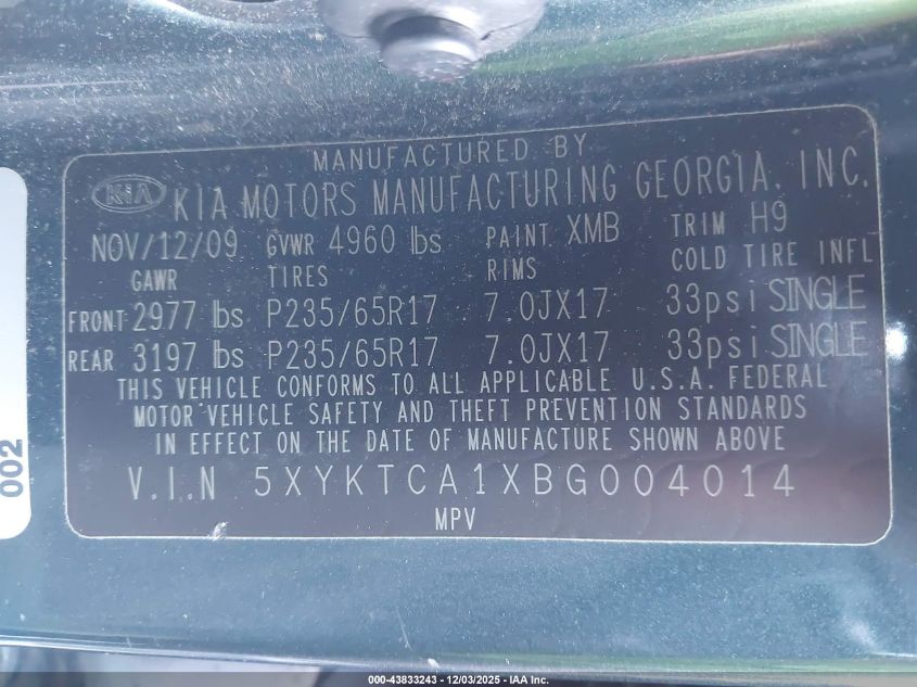 2011 KIA SORENTO BASE