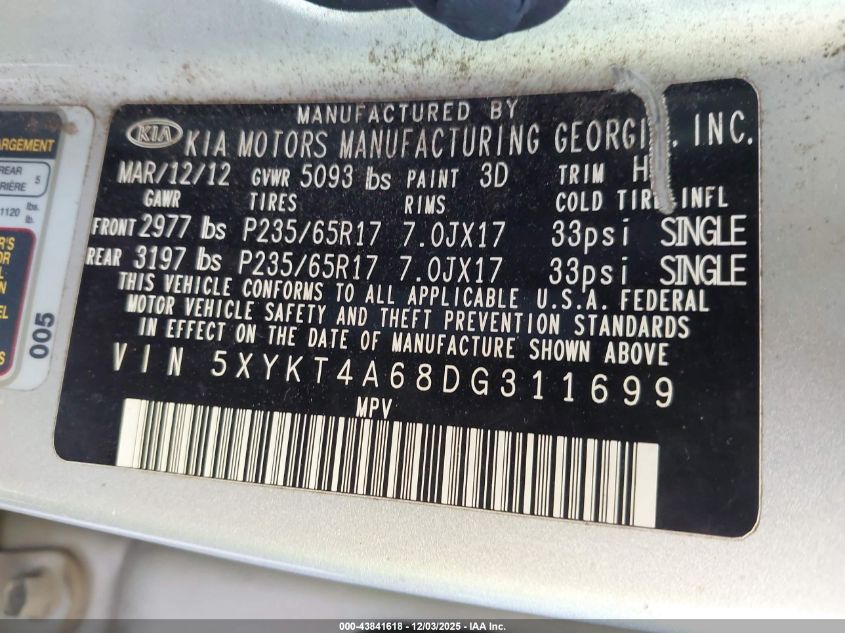 Цвет СеребряныйЦилиндры 4Привод Передний приводVIN 5XYKT4A68DG311699Состояние СтационарноПовреждения Передняя и задняя AutoRIA