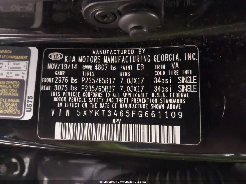 2015 KIA SORENTO 2015 року Бензин, 2.4, Передний привод, vin - 5XYKT3A65FG661109 из США