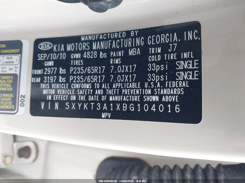 2011 KIA SORENTO 2011 року Бензин, 2.4, Передний привод, vin - 5XYKT3A1XBG104016 из США