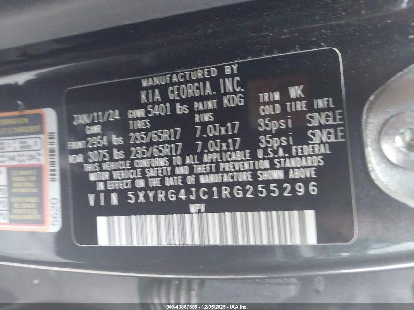 2024 KIA SORENTO 2024 року Бензин, 2.5, Передний привод, vin - 5XYRG4JC1RG255296 из США