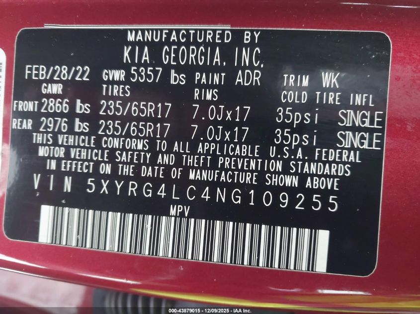2022 KIA SORENTO 2022 року Бензин, 2.5, Передний привод, vin - 5XYRG4LC4NG109255 из США
