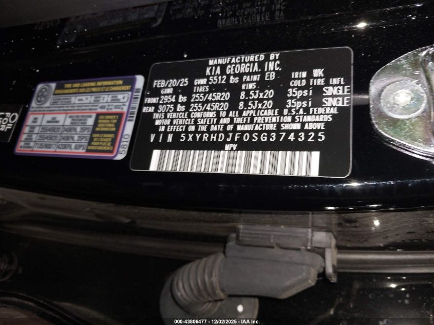2025 KIA SORENTO 2025 року Бензин, 2.5, Полный привод, vin - 5XYRHDJF0SG374325 из США