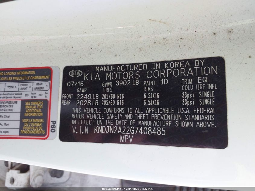 2016 KIA SOUL 2016 року Бензин, 1.6, Передний привод, vin - KNDJN2A22G7408485 из США