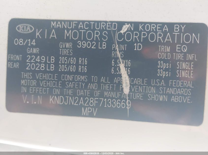Цвет БелыйЦилиндры 4Привод Передний приводVIN KNDJN2A28F7133669Состояние СтационарноПовреждения Механические поврежденияДата аукциона 2025-12-09 AutoRIA