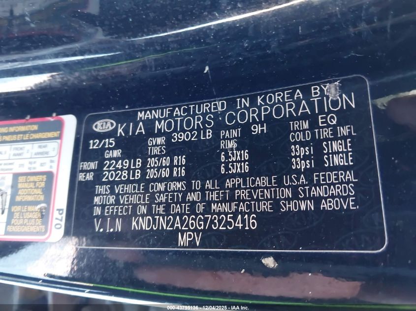 2016 KIA SOUL 2016 року Бензин, 1.6, Передний привод, vin - KNDJN2A26G7325416 из США