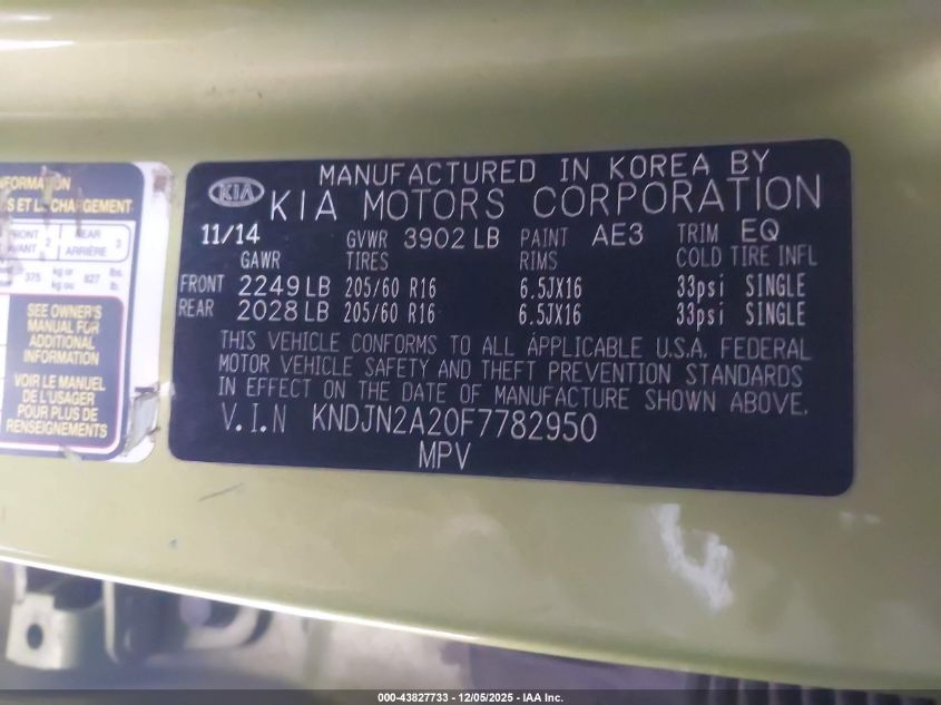 2015 KIA SOUL 2015 року Бензин, 1.6, Передний привод, vin - KNDJN2A20F7782950 из США