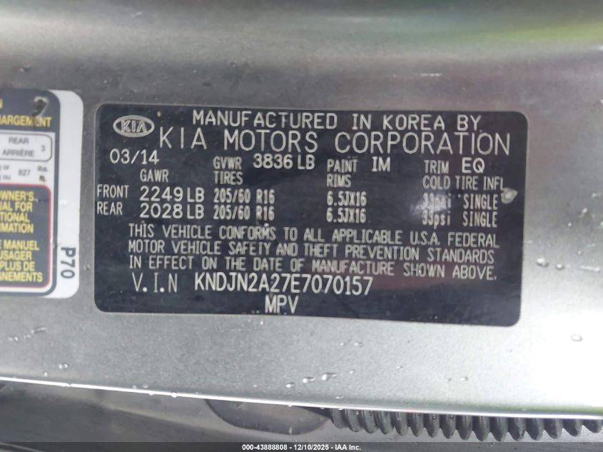 Цвет СерыйЦилиндры 4Привод Передний приводVIN KNDJN2A27E7070157Состояние СтационарноПовреждения Механические повреждения AutoRIA