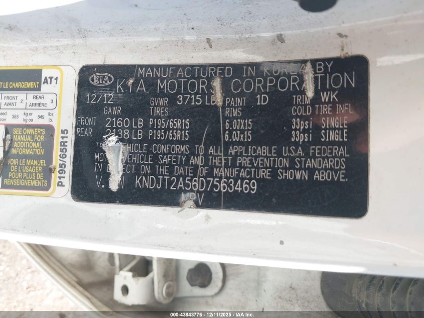Цвет БелыйЦилиндры 4Привод Передний приводVIN KNDJT2A56D7563469Состояние СтационарноПовреждения Передняя или задняя AutoRIA