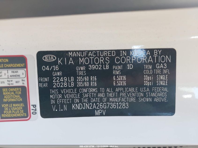 2016 KIA SOUL 2016 року Бензин, 1.6, Передний привод, vin - KNDJN2A26G7361283 из США