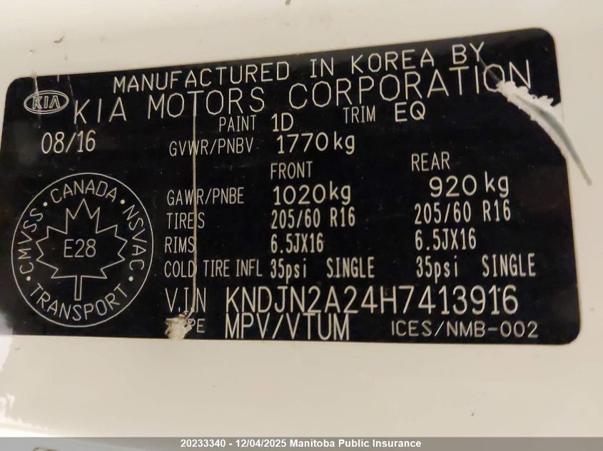 Цвет БелыйЦилиндры 4Привод Передний приводVIN KNDJN2A24H7413916Состояние СтационарноПовреждения ПередняяДата аукциона 2025-12-10 AutoRIA