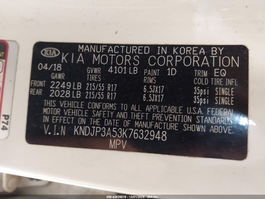 Цвет БелыйЦилиндры 4Привод Передний приводVIN KNDJP3A53K7632948Состояние Заводится и едет (проверено)Повреждения Левая сторона AutoRIA
