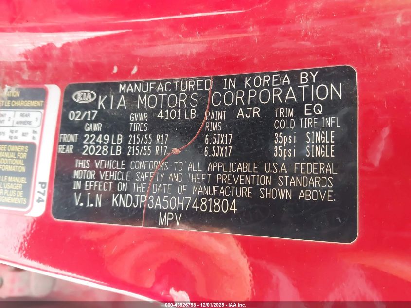 Цвет КрасныйЦилиндры 4Привод Передний приводVIN KNDJP3A50H7481804Состояние Заводится и едет (проверено)Повреждения Передняя левая AutoRIA