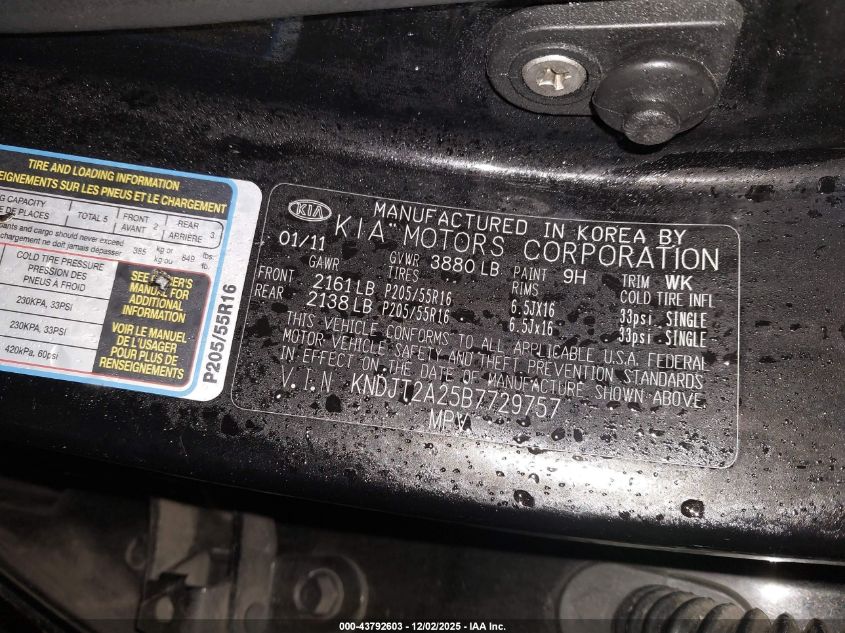 2011 KIA SOUL 2011 року Бензин, 2.0, Передний привод, vin - KNDJT2A25B7729757 из США