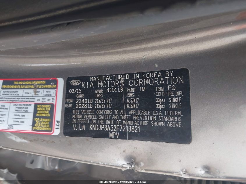 Цвет СерыйЦилиндры 4Привод Передний приводVIN KNDJP3A52F7213821Состояние СтационарноПовреждения По всему авто AutoRIA