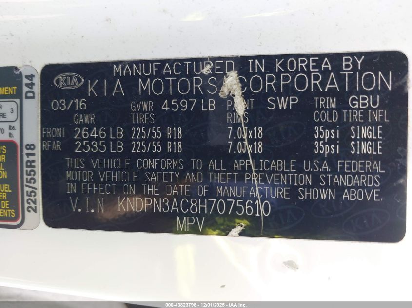 2017 KIA SPORTAGE 2017 року Бензин, 2.4, Передний привод, vin - KNDPN3AC8H7075610 из США