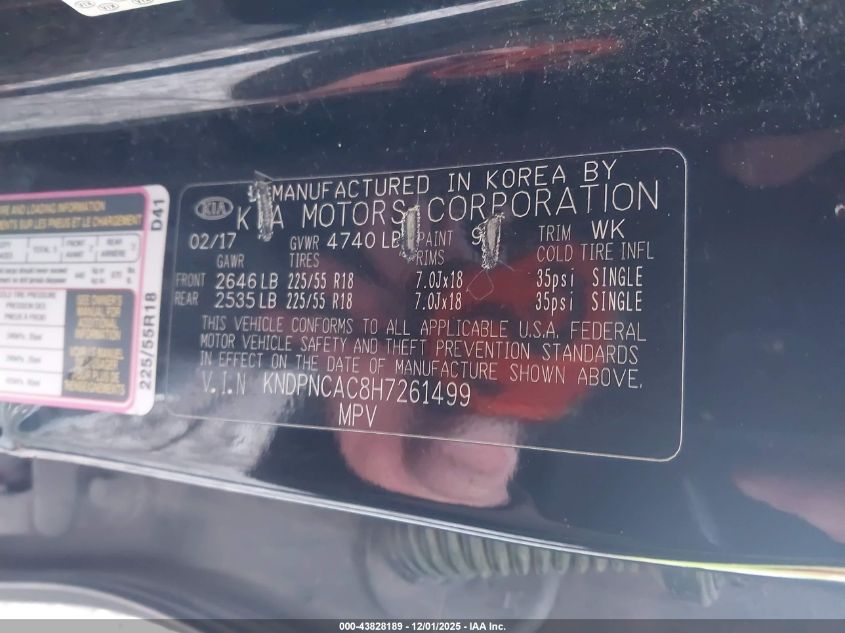 2017 KIA SPORTAGE 2017 року Бензин, 2.4, Полный привод, vin - KNDPNCAC8H7261499 из США