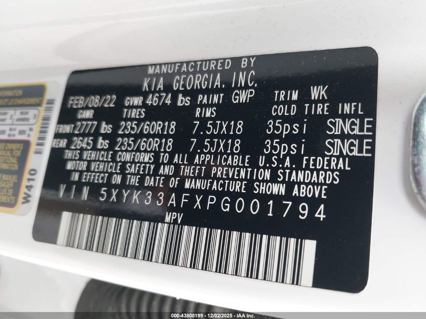 Цвет БелыйЦилиндры 4Привод Передний приводVIN 5XYK33AFXPG001794Состояние Заводится и едет (проверено)Повреждения Передняя или задняя AutoRIA