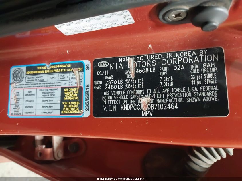 2011 KIA SPORTAGE 2011 року Бензин, 2.4, Полный привод, vin - KNDPCCA20B7102464 из США