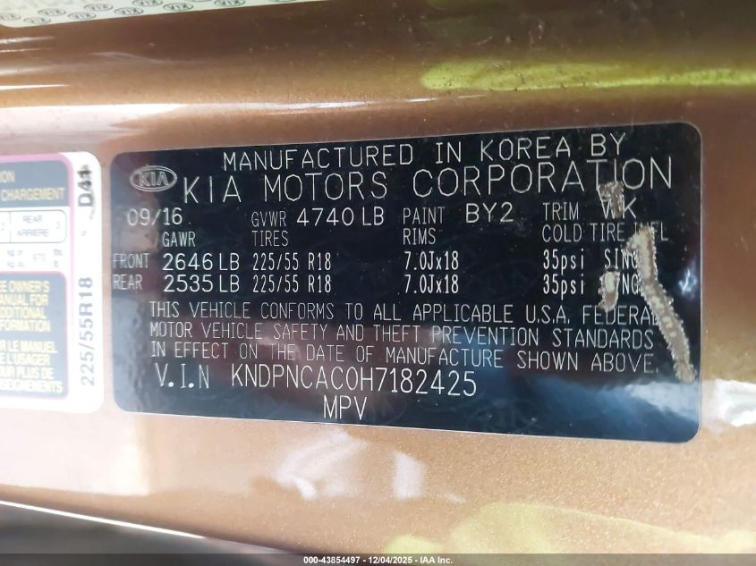 2017 KIA SPORTAGE 2017 року Бензин, 2.4, Полный привод, vin - KNDPNCAC0H7182425 из США