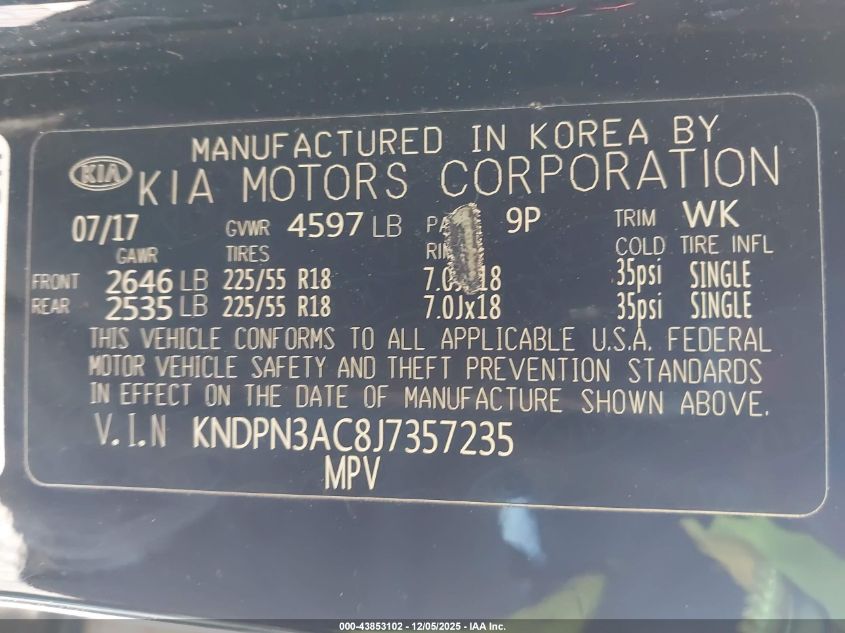 2018 KIA SPORTAGE 2018 року Бензин, 2.4, Передний привод, vin - KNDPN3AC8J7357235 из США