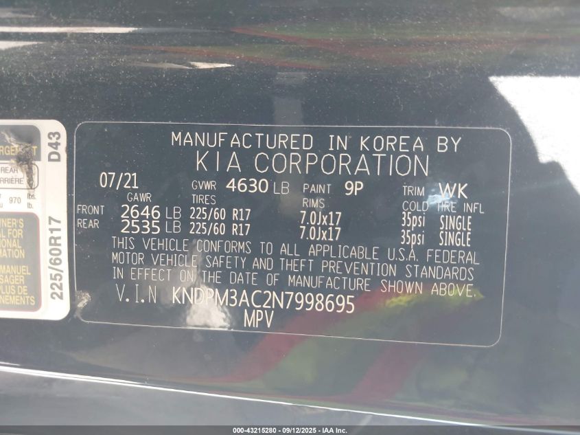 2022 KIA SPORTAGE 2022 року Бензин, 2.4, Передний привод, vin - KNDPM3AC2N7998695 из США