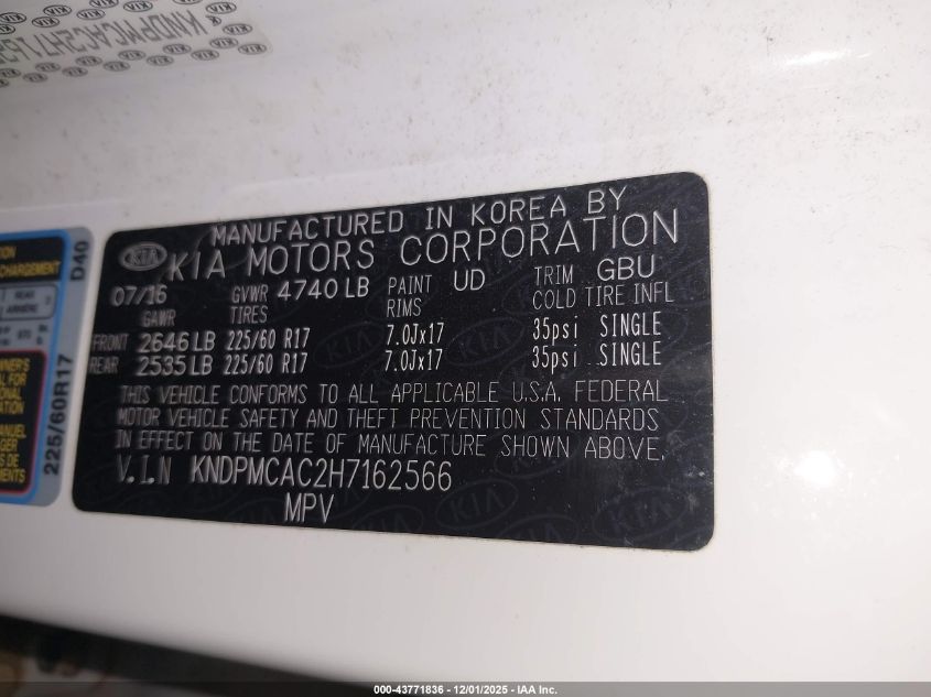 2017 KIA SPORTAGE 2017 року Бензин, 2.4, Полный привод, vin - KNDPMCAC2H7162566 из США