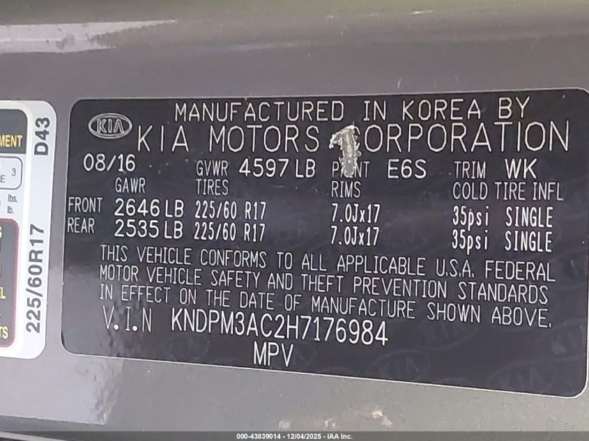 2017 KIA SPORTAGE LX