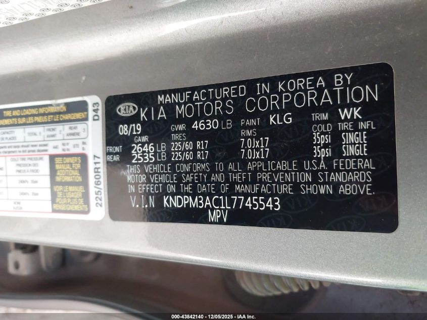 2020 KIA SPORTAGE 2020 року Бензин, 2.4, Передний привод, vin - KNDPM3AC1L7745543 из США