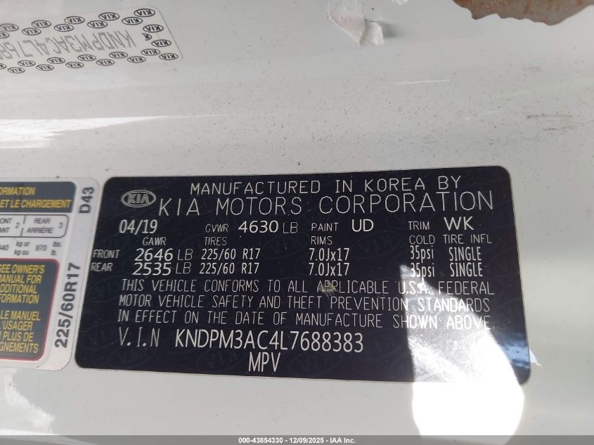 Цвет БелыйЦилиндры 4Привод Передний приводVIN KNDPM3AC4L7688383Состояние Заводится и едет (проверено)Повреждения Передняя или задняя AutoRIA