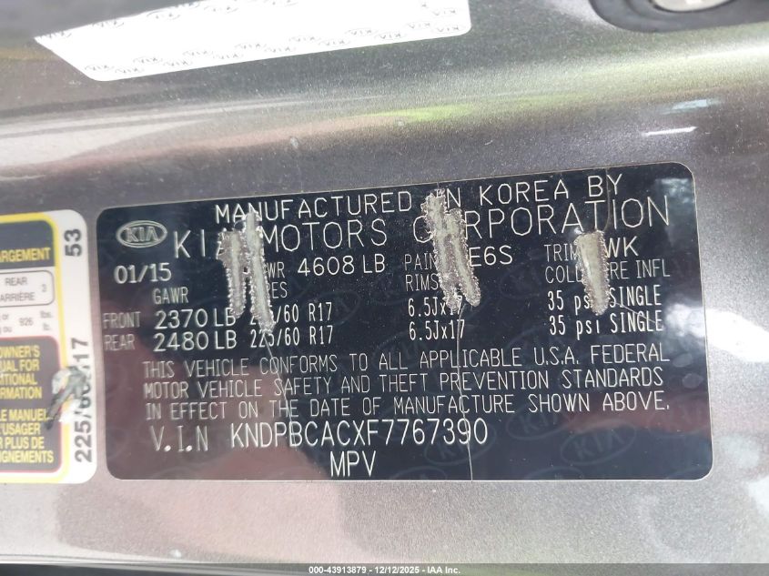 2015 KIA SPORTAGE 2015 року Бензин, 2.4, Полный привод, vin - KNDPBCACXF7767390 из США