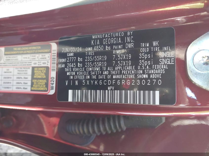 Цвет КрасныйЦилиндры 4Привод Полный приводVIN 5XYK6CDF6RG230270Состояние СтационарноПовреждения Передняя или задняя AutoRIA