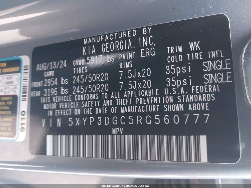 2024 KIA TELLURIDE 2024 року Бензин, 3.8, Полный привод, vin - 5XYP3DGC5RG560777 из США