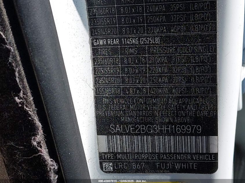 2017 LAND ROVER RANGE ROVER EVOQUE 2017 року Бензин, 2.0, Полный привод, vin - SALVE2BG3HH169979 из США
