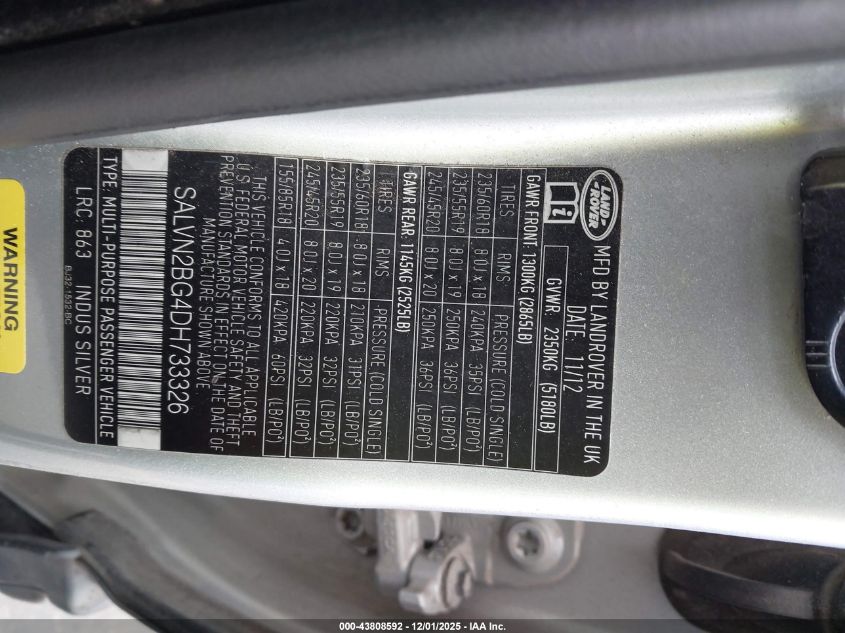 2013 LAND ROVER RANGE ROVER EVOQUE 2013 року Бензин, 2.0, Полный привод, vin - SALVN2BG4DH733326 из США