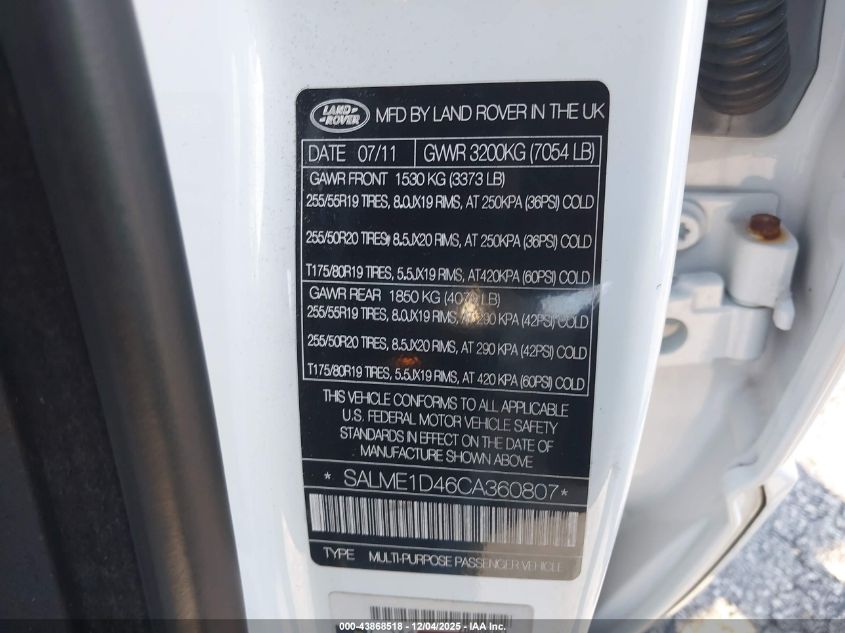 2012 LAND ROVER RANGE ROVER SC