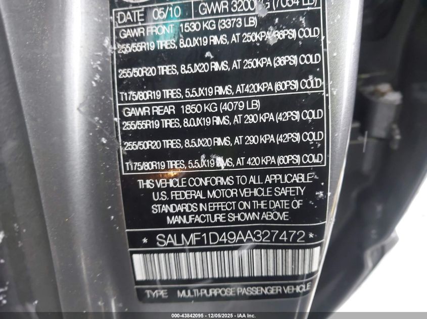 2010 LAND ROVER RANGE ROVER 2010 року Бензин, 5.0, Полный привод, vin - SALMF1D49AA327472 из США