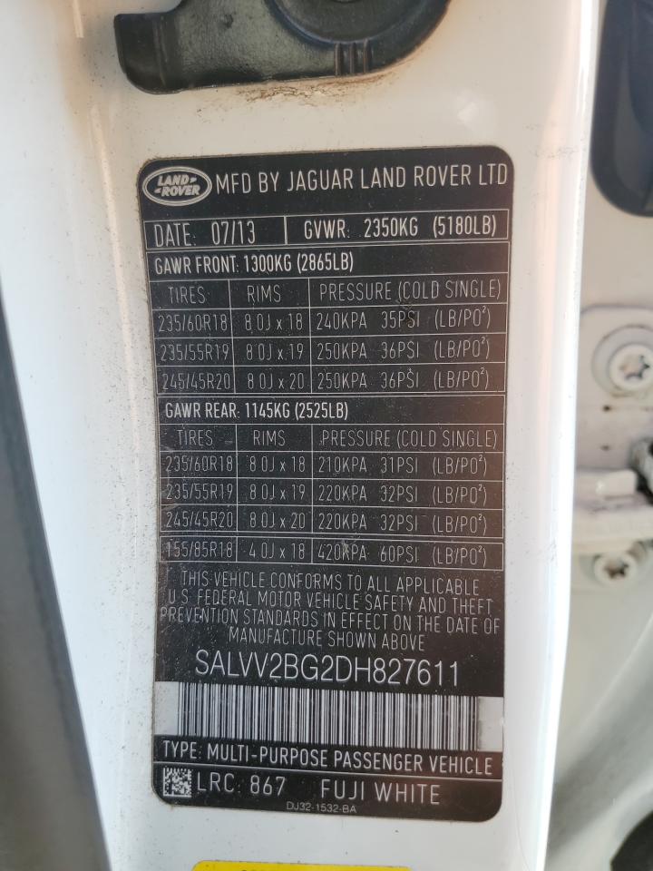 2013 LAND ROVER RANGE ROVER 2013 року Бензин, 2.0, Полный привод, vin - SALVV2BG2DH827611 из США