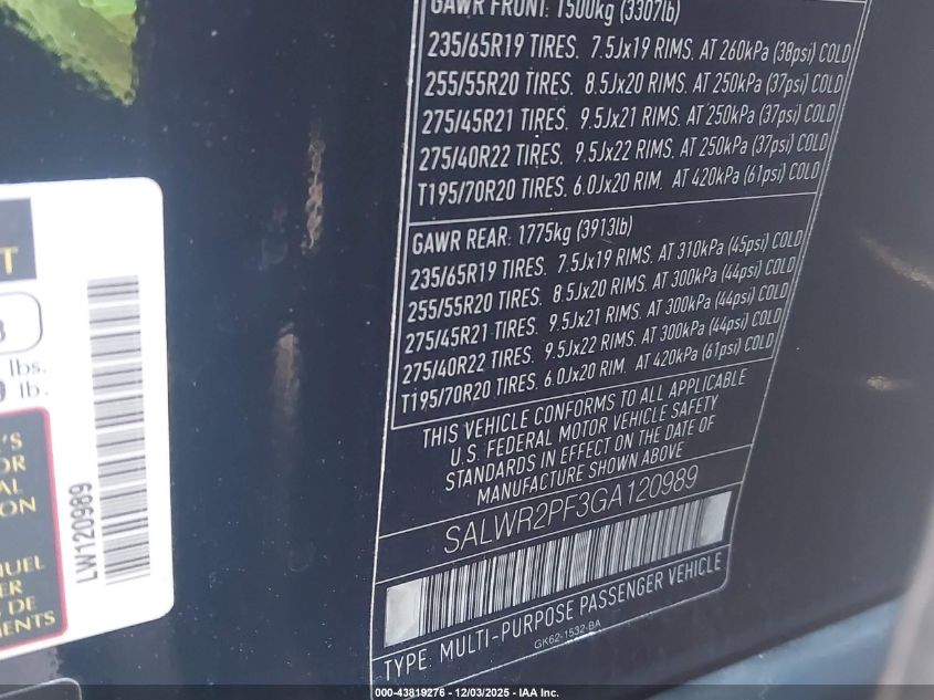 Цвет ЧерныйЦилиндры 6Привод Полный приводVIN SALWR2PF3GA120989Состояние Заводится и едет (проверено)Повреждения Передняя или задняя AutoRIA