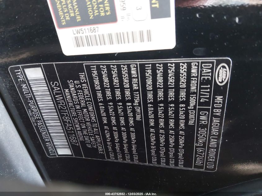 Цвет ЧерныйЦилиндры 8Привод Полный приводVIN SALWR2TF8FA511687Состояние Заводится и едет (проверено)Повреждения Передняя левая AutoRIA