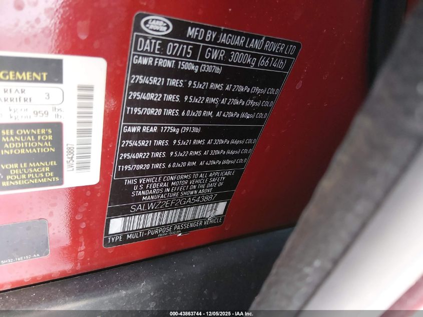 2016 LAND ROVER RANGE ROVER SPORT 2016 року Бензин, 5.0, Полный привод, vin - SALWZ2EF2GA543887 из США