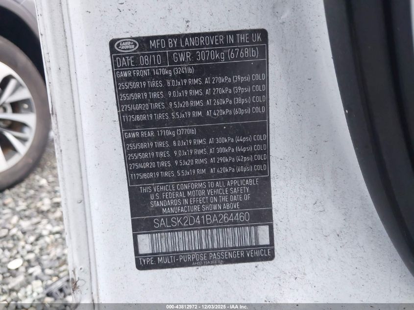 2011 LAND ROVER RANGE ROVER SPORT 2011 року Бензин, 5.0, Полный привод, vin - SALSK2D41BA264460 из США