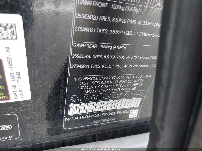 2021 LAND ROVER RANGE ROVER SPORT 2021 року Бензин, 3.0, Полный привод, vin - SALWR2SU8MA771648 из США