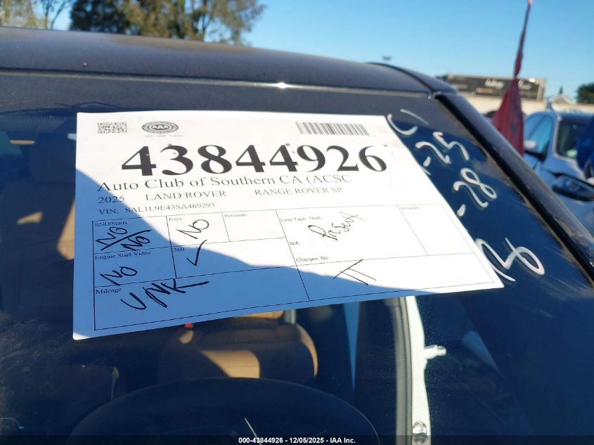 2025 LAND ROVER RANGE ROVER SPORT 2025 року Гибрид, 3.0, Полный привод, vin - SAL1L9E43SA469293 из США