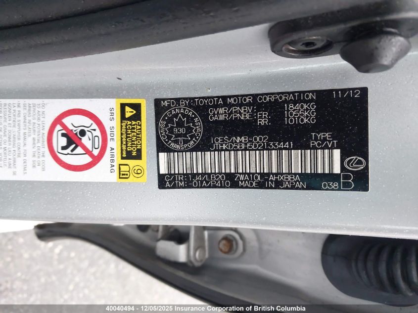 2013 LEXUS CT 2013 року Бензин, , Передний привод, vin - JTHKD5BH5D2133441 из США