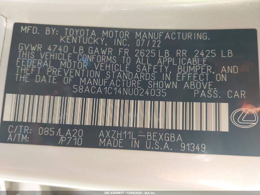 2022 LEXUS ES 300H 2022 року Гибрид, 2.5, Передний привод, vin - 58ACA1C14NU024035 из США