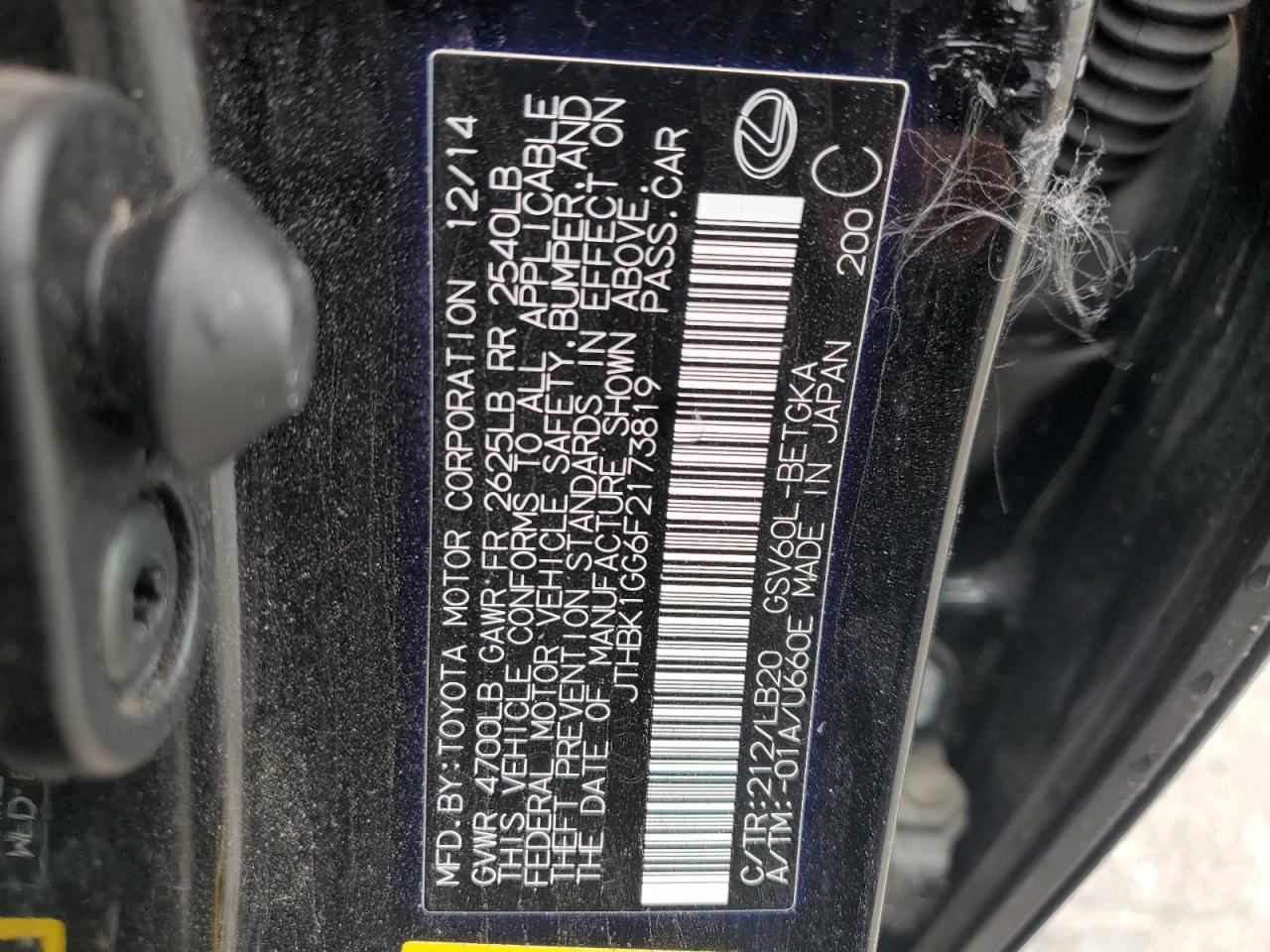 Цвет ЧерныйЦилиндры 6VIN JTHBK1GG6F2173819Состояние НеизвестноПовреждения Передняя или задняя AutoRIA