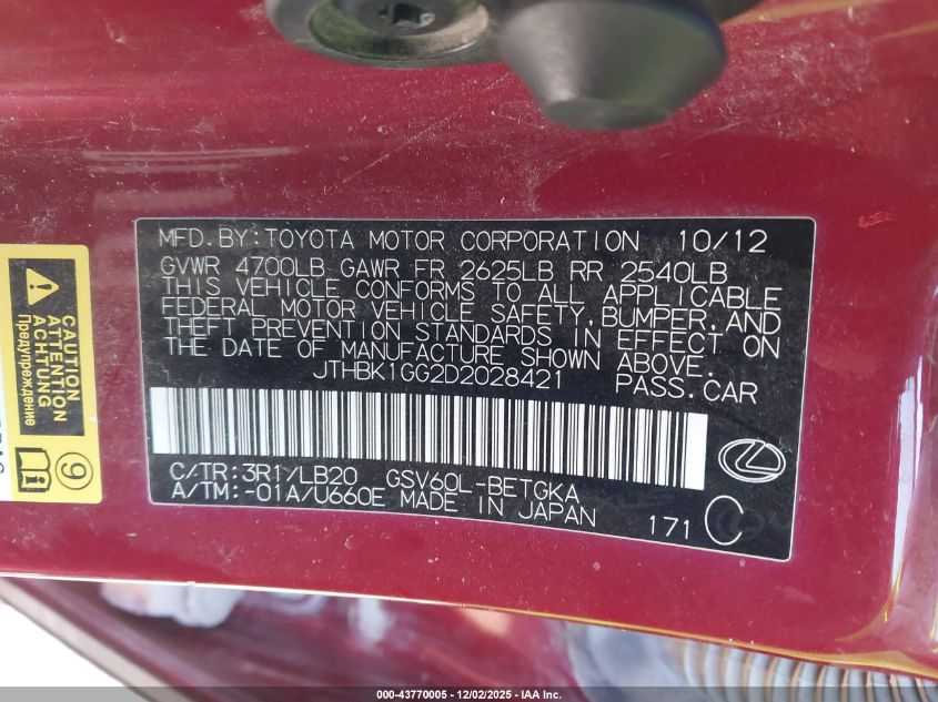 Цвет КрасныйЦилиндры 6Привод Передний приводVIN JTHBK1GG2D2028421Состояние Заводится и едет (проверено)Повреждения Передняя или задняя AutoRIA