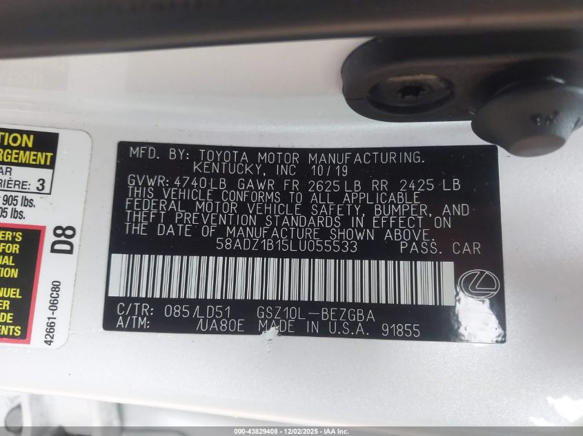 2020 LEXUS ES 350 2020 року Бензин, 3.5, Передний привод, vin - 58ADZ1B15LU055533 из США